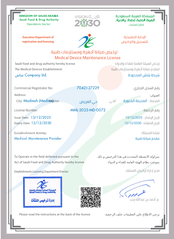 ترخيص الصيانه الطبية